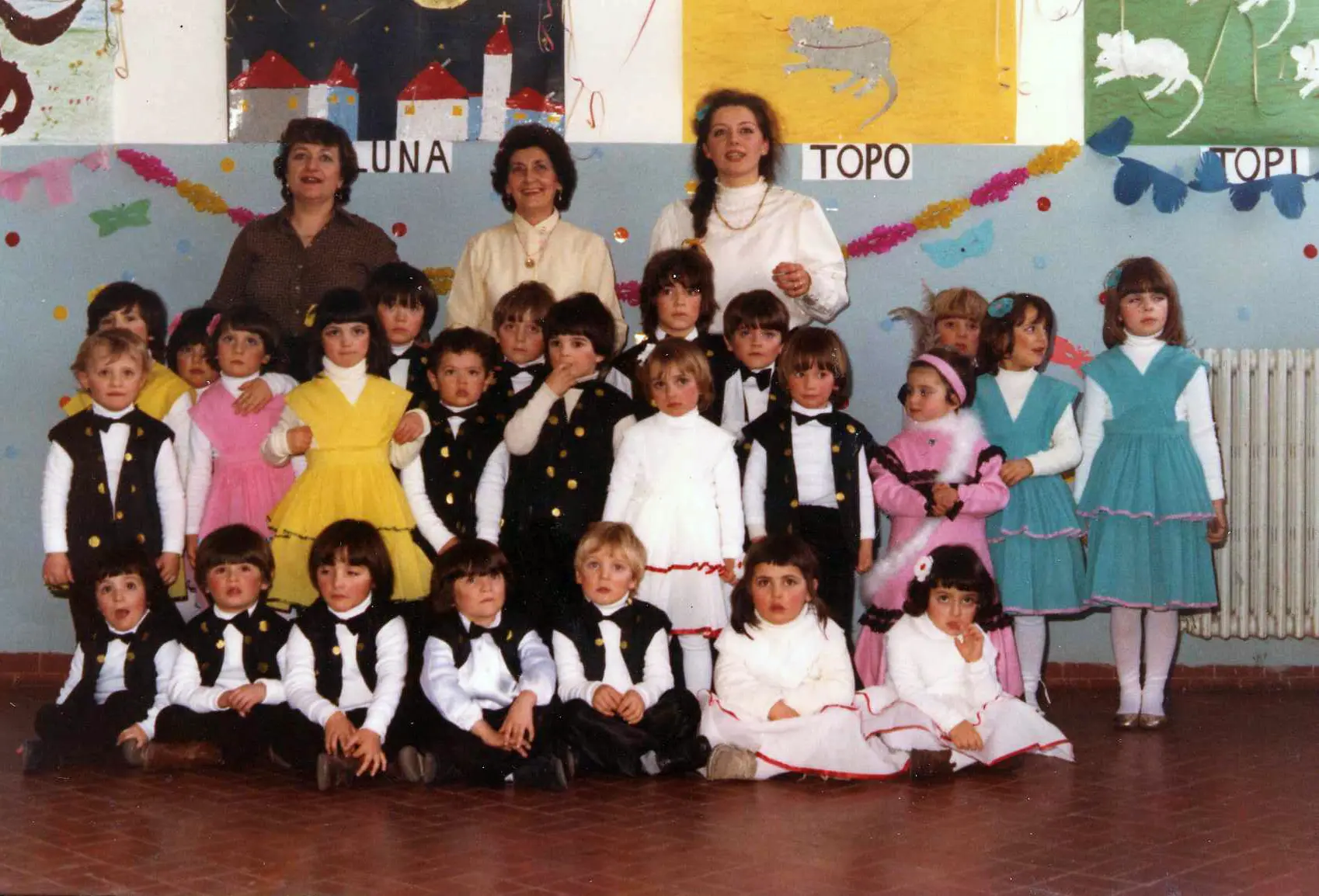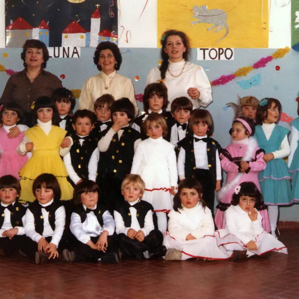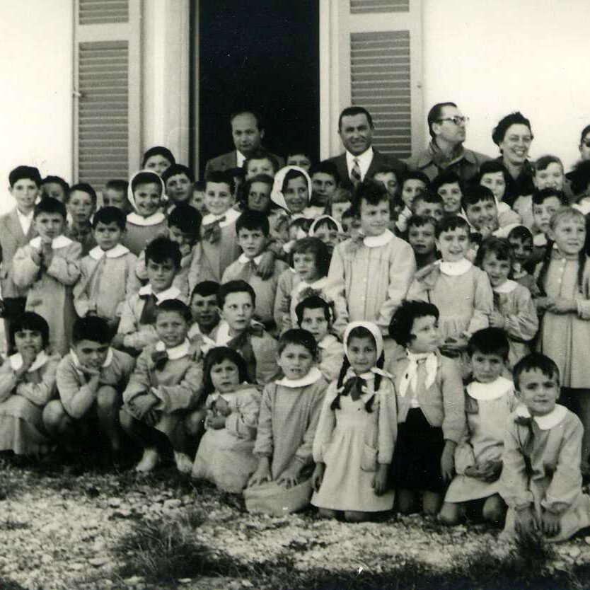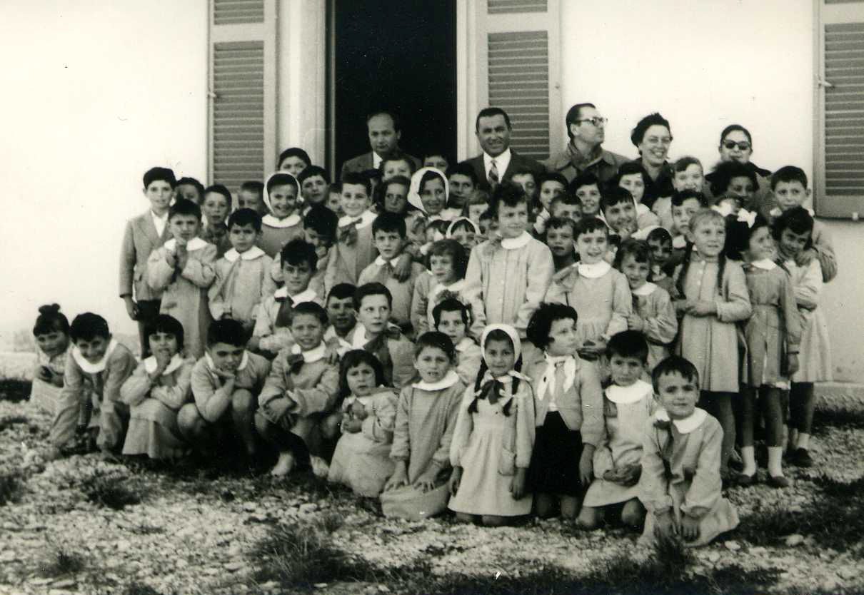 The new building just inaugurated included only the elementary school and was divided into only three classrooms. Then, in the 1970s, the kindergarten was built and it was located on the first floor of the building between the public gardens and the Parish Church, now used as low-income housing.